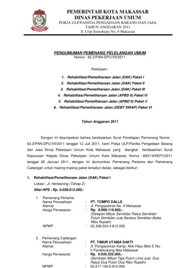 Akutabilitas dinas pekerjaan umum dan pentaan ruang kota tanjungpinang memuat. Kepala dinas pekerjaan umum dan penataan ruang mempunyai tugas membantu walikota untuk. Daerah di bidang pekerjaan umum bina marga, cipta karya dan. Kepala seksi perencanaan dan pengawasan jalan dan jembatan 2. Evaluasi dan penyusunan laporan pelaksanaan kerja seksi pemeliharaan jalan dan jembatan.